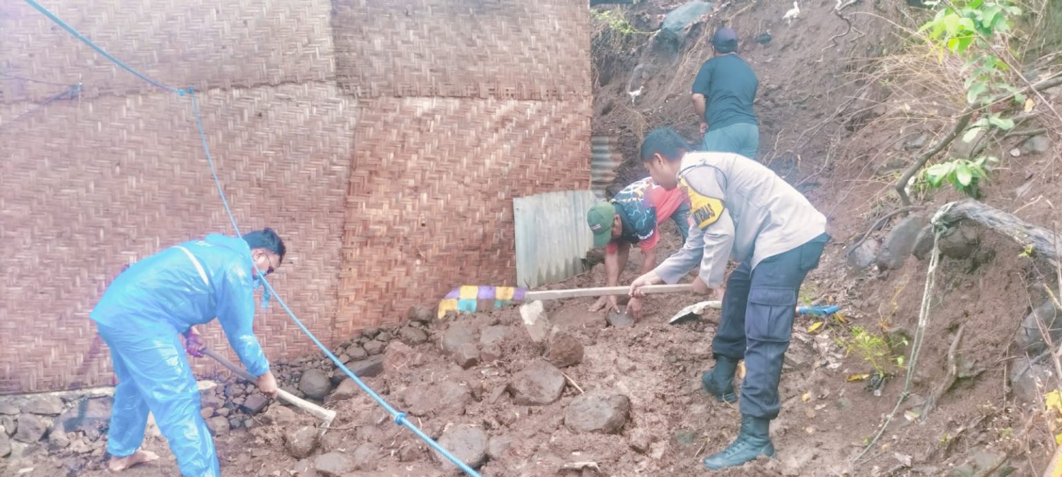 Sumbawa Barat Obormerahnews.com-Bhabinkamtibmas Desa Mantun, Bripka Ramli, bersama Pemerintah Desa Mantun, Babinsa, PDPGR, perangkat dusun dan ketua RT, serta masyarakat sekitar melaksanakan gotong royong membantu warga yang terdampak tanah longsor di Dusun Mantun Barat, Desa Mantun, Kecamatan Maluk, Rabu (10/9/2025) .