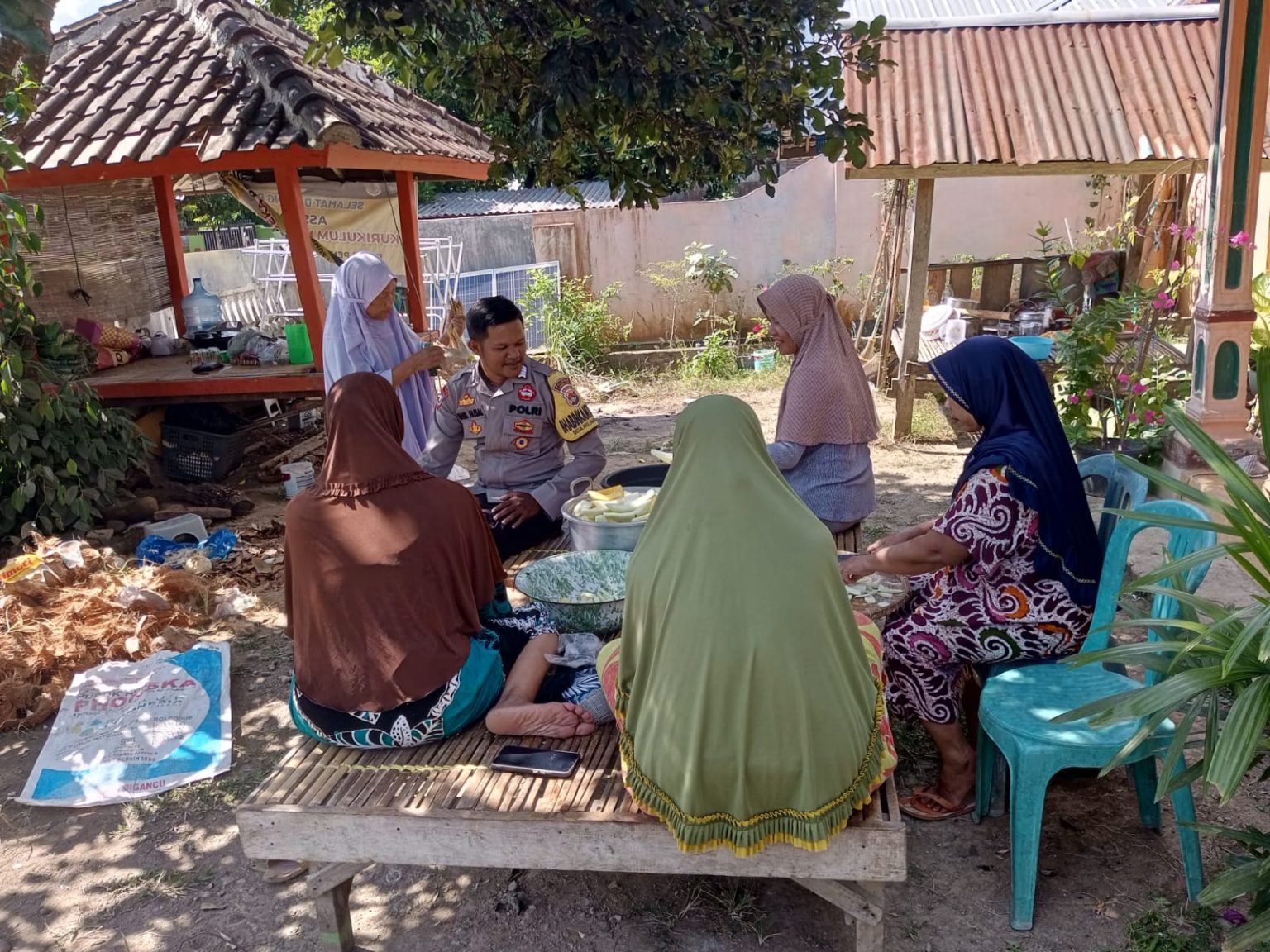 Bhabinkamtibmas pada saat sambang kepada masyarakat menemui ibu – ibu yang sedang berkerumun melakukan aktivitas, kesempatan tersebut dimanfaatkan oleh Bripka Muhammad Faisal selaku Bhabinkamtibmas untuk memberikan himbauan Kamtibmas karena menurutnya sangat efektif dilakukan himbauan kepada ibu – ibu, dengan tujuan untuk menyampaikan pesan berantai kepada masyarakat lainnya tentang kamtibmas yang saat ini sudah memasuki masa perhelatan dalam pemilihan Bupati dan Wakil Bupati.