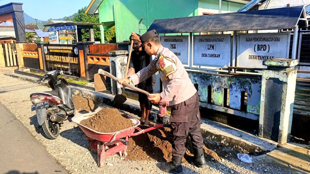 Sumbawa Barat Obormerahnews.com-Dalam upaya menjaga kebersihan lingkungan serta mencegah terjadinya genangan air dan banjir di musim hujan, Bhabinkamtibmas Desa Tamekan, Brigpol Aditya Prayudha, melaksanakan kegiatan gotong royong bersama masyarakat Dusun Tamekan I, Desa Tamekan, Kecamatan Taliwang, pada Jumat (30/1/2026).