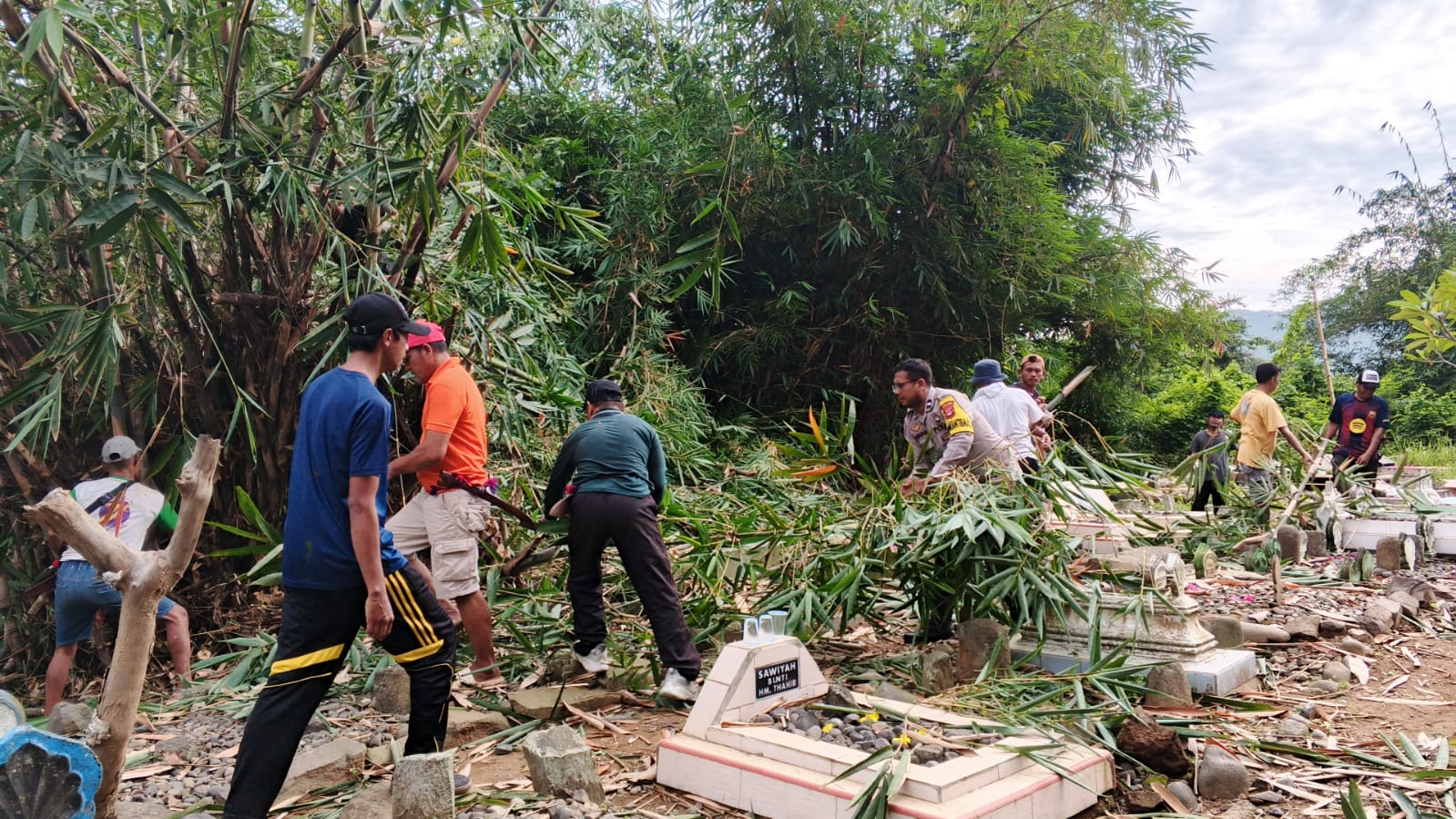 Gotong royong ini melibatkan Bhabinkamtibmas, warga setempat, serta Agen Gotong Royong Kelurahan Menala, yang dengan penuh semangat bahu-membahu membersihkan area pemakaman.