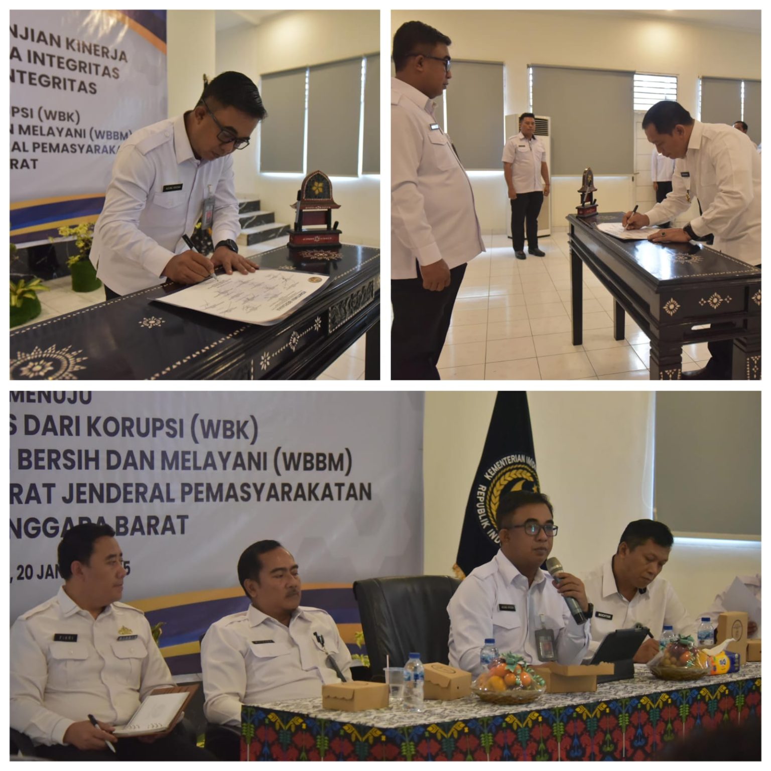 Sumbawa Besar Obormerahnews.com-Kepala Lembaga Pemasyarakatan Kelas IIA Sumbawa Besar Kanwil Direktorat Jenderal Pemasyarakatan NTB,Purniawal A.Md.IP., SH.,MH menandatangani Perjanjian Kinerja, Pakta Integritas, serta Pencanangan Zona Integritas menuju WBK/WBBM Tahun 2025 yang disaksikan langsung oleh Kepala Kantor Wilayah Direktorat Jenderal Pemasyarakatan NTB Anak Agung Gde Krisna, Senin (20/01).