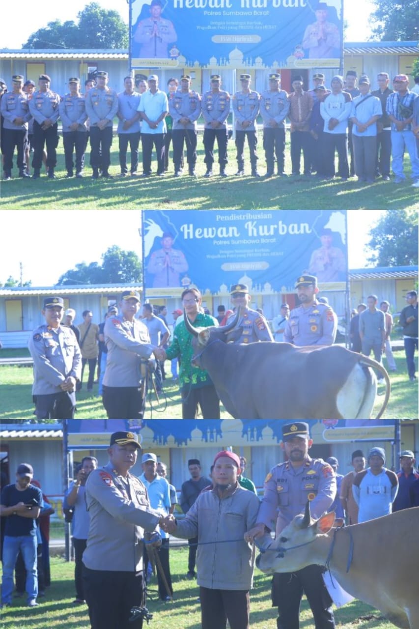 Sumbawa Barat Obormerahnews.com– Kepolisian Resor ( Polres) Sumbawa Barat membagikan hewan qurban kepada masyarakat di Kabupaten Sumbawa Barat bertempat dilapangan Apel Wicaksana Laghawa Polres Sumbawa Barat Kamis 5 Juni 2025.