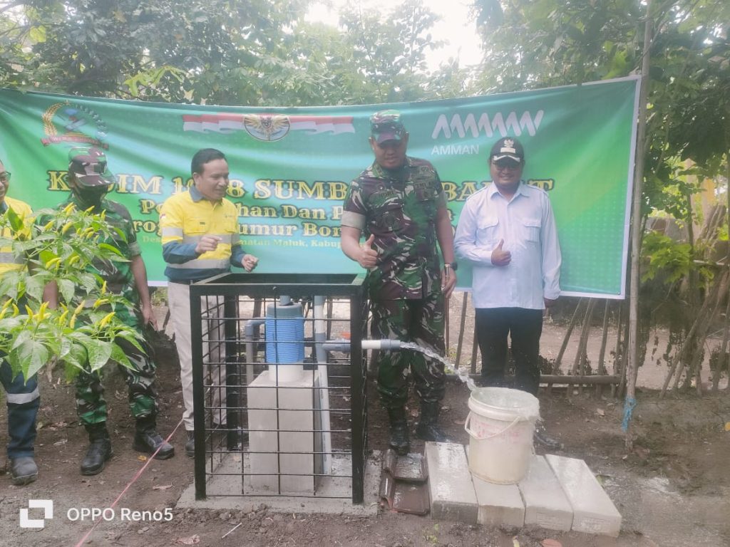 “Atas nama Pemerintah Desa Mantun dan seluruh masyarakat, mengucapkan rasa syukur dan terima kasih yang sebesar-besarnya kepada Bapak Dandim 1628/Sumbawa Barat beserta jajaran, serta kepada pihak PT. AMMAN Mineral Nusa Tenggara yang telah memberikan perhatian dan bantuan berupa sumur bor di Dusun Mantun Barat Desa Mantun Kecamatan Maluk Kabupaten Sumbawa Barat,” jelas Kades Heri.