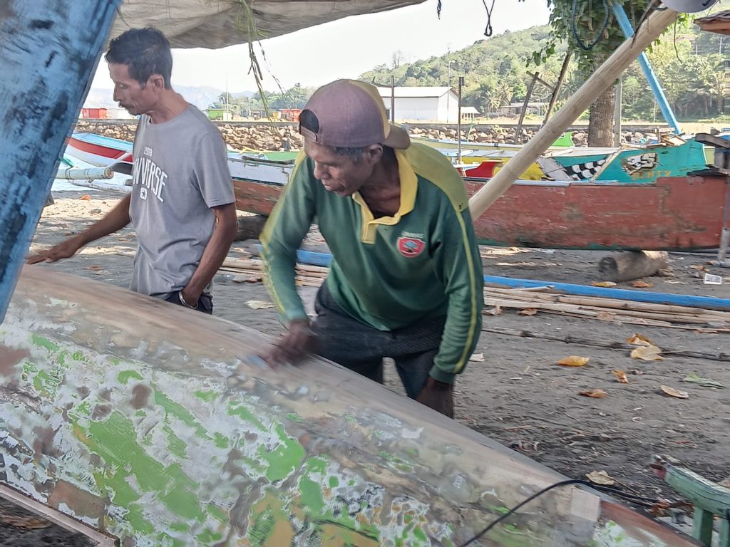 Menjelang Pagelaran Seni Budaya Sandeka Dilaok 2025, Masyarakat Labuhan Lalar Kompak Perbaiki Sampan Lomba