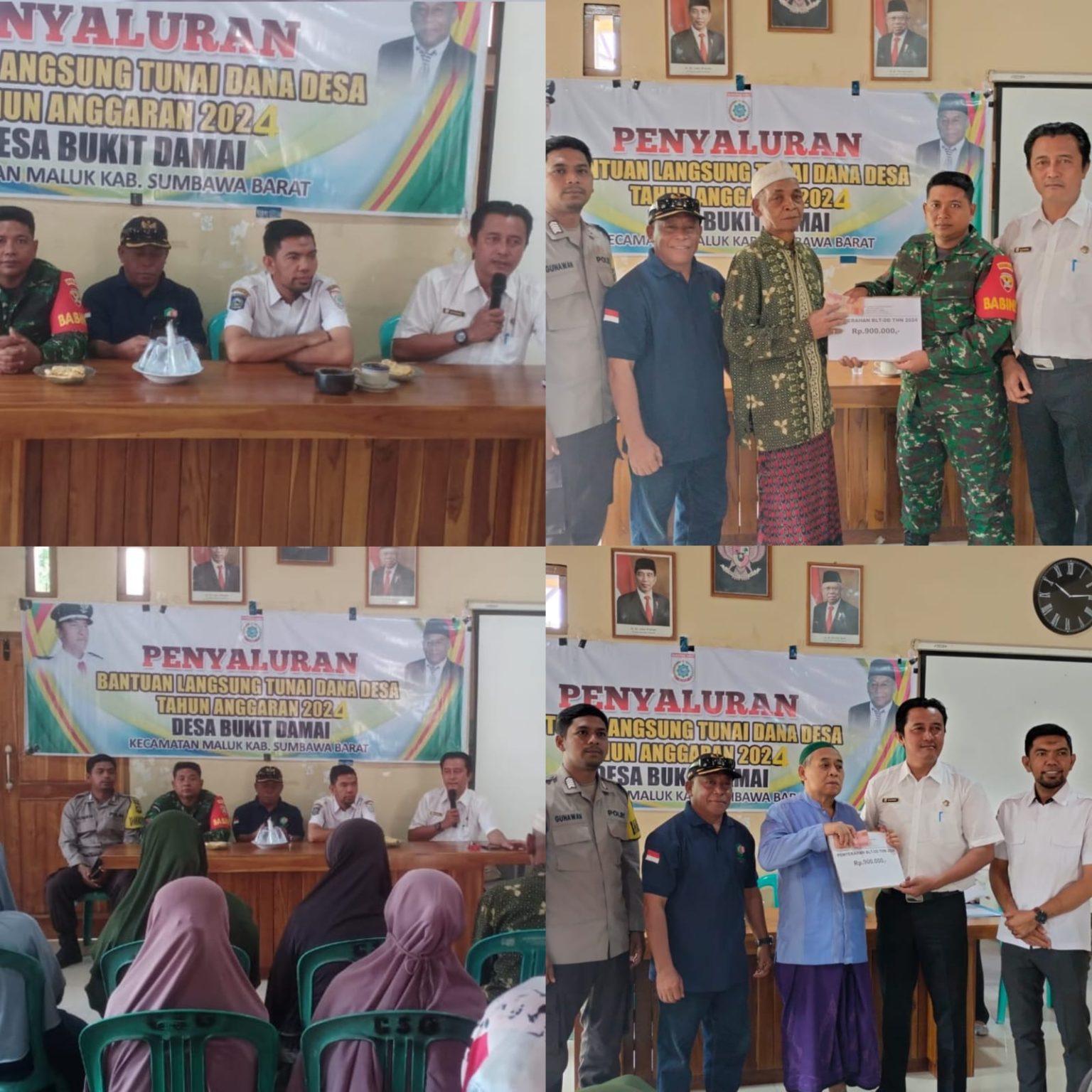 Kepala Desa Bukit Damai Suwardi, Sekcam Maluk Heru Sudriansyah, S.Pd., M.Pd, Ketua BPD M.Nur, SE, Bhabinkamtibmas Bripka Wawan Gunawan, Babinsa Kopda Ahmad Fahri dan 20 Keluarga Penerima Manfaat.
