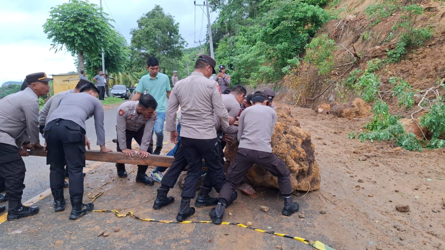 Runtuhnya batu akibat hujan deras mengguyur wilayah Kabupaten Sumbawa Barat pada malam hari, durasi hujan yang cukup lama dan deras membuat kondisi tebing dan pohon tidak mampu menahan berat batu. hingga meluncur begitu saja.