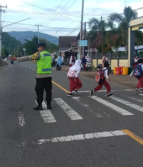Sumbawa Barat Obormerahnews.com-Personel Polsek Jereweh melaksanakan kegiatan pengaturan lalu lintas pada jam masuk sekolah di depan SDN 1 Goa, Kecamatan Jereweh, Kabupaten Sumbawa Barat, sebagai bentuk pelayanan prima kepada masyarakat, khususnya para pelajar dan orang tua siswa, pada jam rawan kepadatan kendaraan, pagi hari. Senin,(01/12/2025).