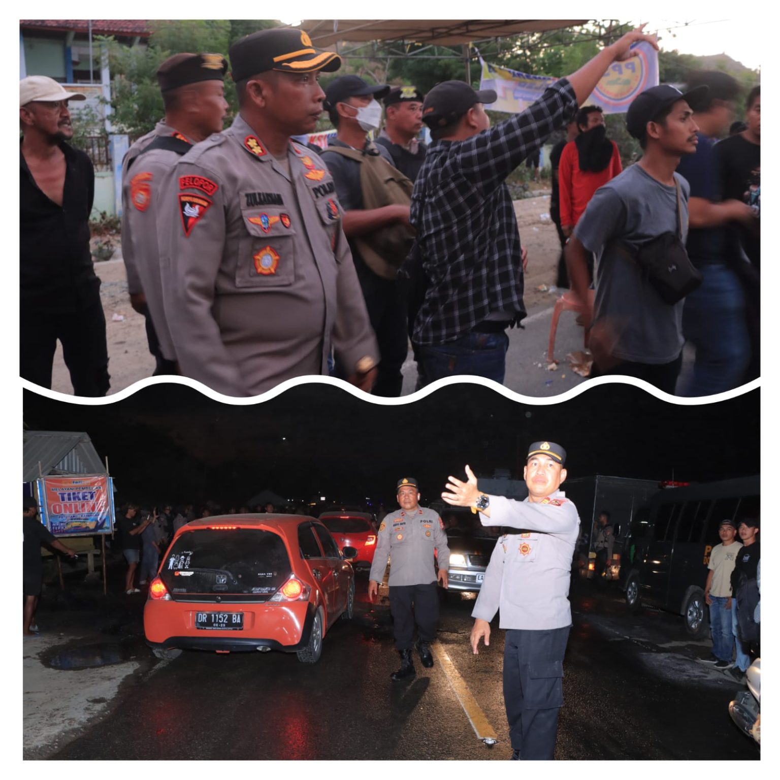 Menjelang sore, arus lalu lintas sempat tersendat akibat konsentrasi massa di akses menuju Pelabuhan Laut Poto Tano. Namun, petugas dengan sigap memberikan imbauan persuasif kepada massa untuk membuka akses jalan. Situasi akhirnya dapat dikendalikan dan lalu lintas kembali normal sekitar pukul 18.20 WITA.