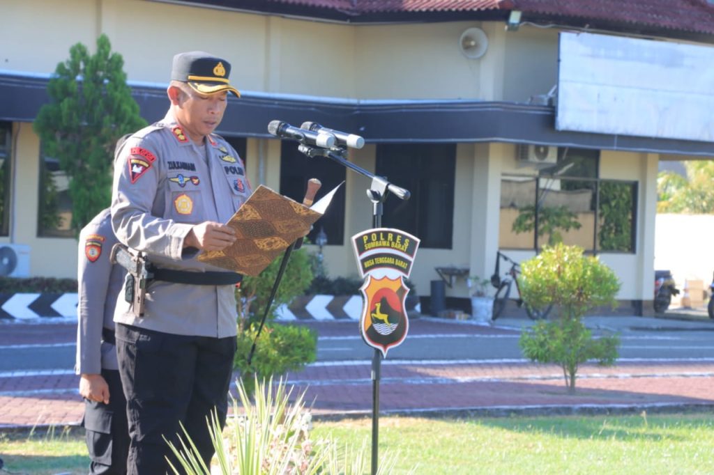 Kapolres Sumbawa Barat, AKBP Zulkarnain, S.I.K., bertindak sebagai Inspektur Upacara dan dihadiri oleh Pejabat Utama, seluruh personel Polres Sumbawa Barat serta Personel Brimob Kompi 2 Yon B Pelopor.