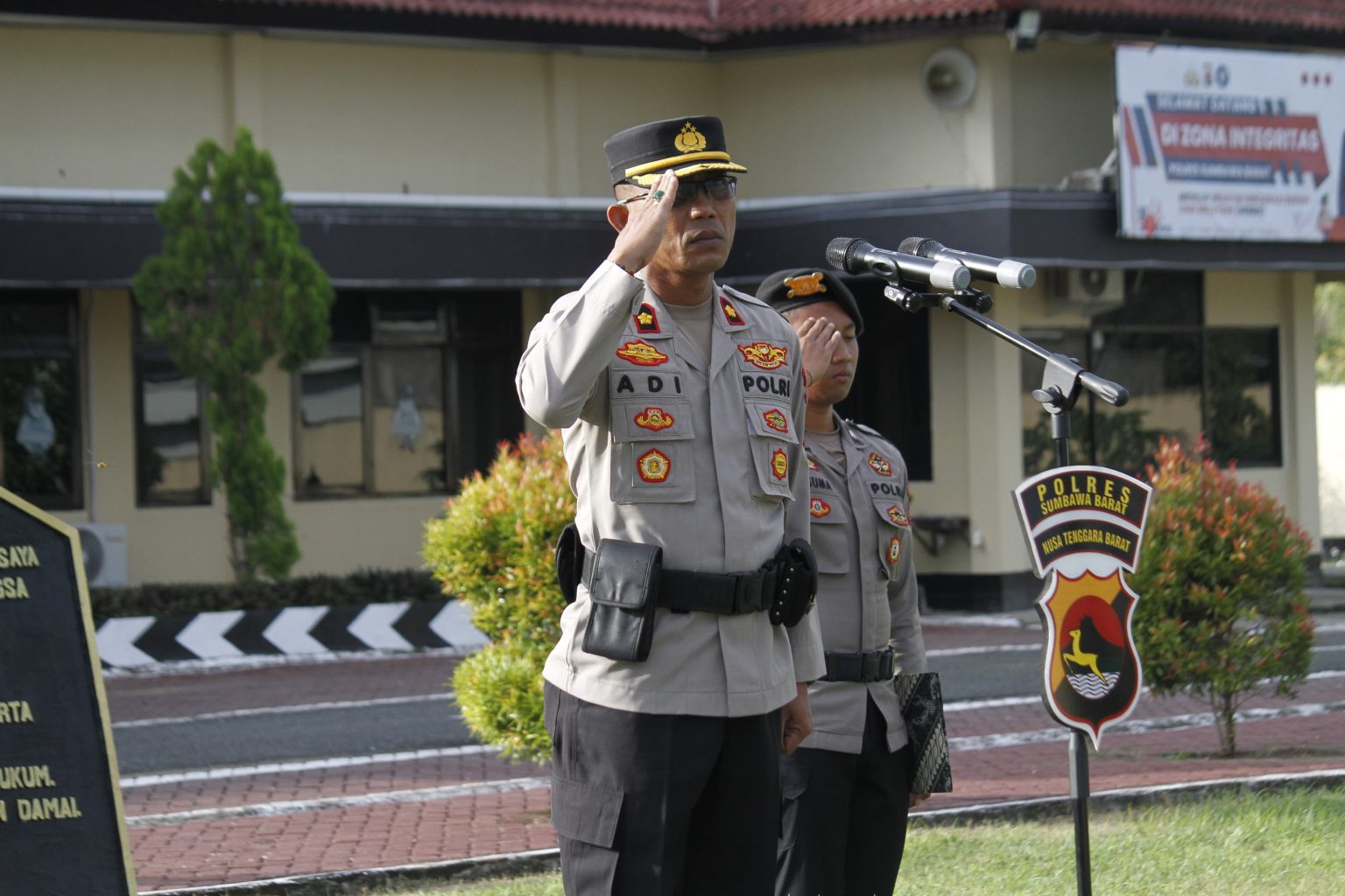Wakapolres Sumbawa Barat Kompol Nyoman Adi Kurniawan, S.H sebagai Inspektur Upacara sedangkan bertindak selaku Perwira Upacara AKP Zainal Abidin, S.H Kasi Humas dan dihadiri oleh seluruh Pejabat Utama Polres Sumbawa Barat, Wadanki 2 Yon B Pelopor Sat Brimob Polda NTB, satu pleton pasukan Brimob, satu pleton Samapta, satu pleton Sat Lantas, satu pleton staf Polres dan gabungan Polsek serta satu pleton Reserse/Intel.