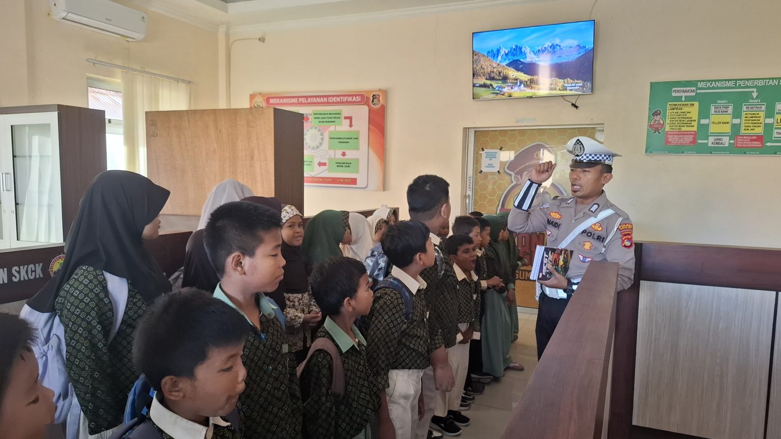 Sumbawa Barat Obormerahnews.com-Polres Sumbawa Barat melalui Satuan Lalu Lintas menerima kunjungan edukatif dari siswa SD Muhammadiyah Taliwang pada hari Rabu, 18 Juni 2025, pukul 08.00 Wita. Kegiatan ini berlangsung di halaman Mapolres Sumbawa Barat, ruang SPKT dan ruang Satlantas yang diikuti dengan penuh antusias oleh para siswa didampingi oleh guru serta para orang tua.