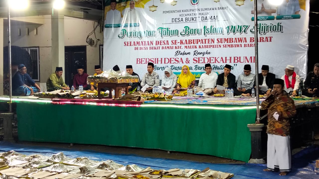 Kegiatan yang berlangsung mulai pukul 20.30 WITA ini dipusatkan di area samping Kantor Desa Bukit Damai dan dihadiri oleh sejumlah pejabat penting, antara lain Asisten I Bupati Sumbawa Barat Khusnarti, S.Pd., M.M.Inov mewakili Bupati, Kapolres Sumbawa Barat diwakili Kapolsek Maluk Kompol Tohir, S.H, serta perwakilan dari Dandim 1628/SB, Kejaksaan Negeri Sumbawa Barat, OPD, Camat Maluk, para Kepala Desa, tokoh adat, tokoh agama, tokoh masyarakat, dan ratusan warga setempat.