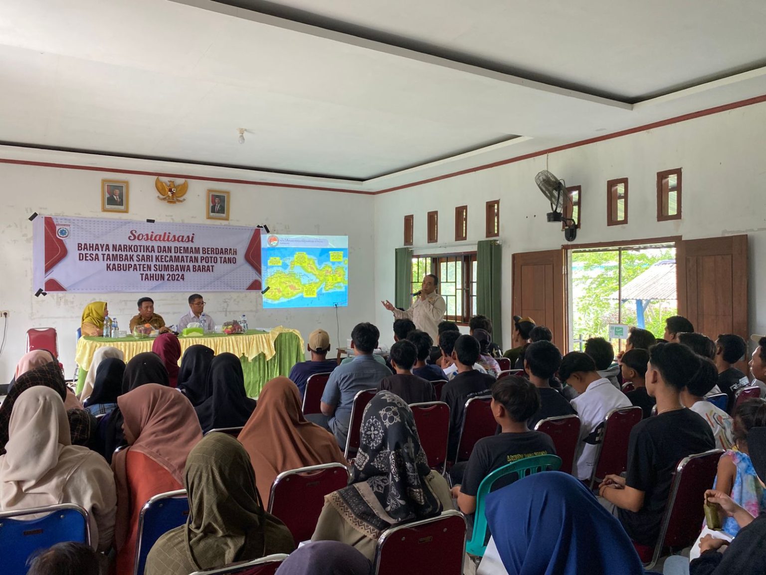 Sumbawa Barat Obormerahnews.com– Sat Resnarkoba Polres Sumbawa Barat menggelar kegiatan penyuluhan tentang bahaya narkoba di Aula Kantor Desa Tambak Sari Kecamatan Poto Tano, Kabupaten Sumbawa Barat, pada hari Senin, 31 Desember 2024, pukul 09.00 WITA. Kegiatan ini bertujuan untuk memberikan pemahaman tentang dampak negatif narkoba serta upaya pencegahan dan rehabilitasi bagi masyarakat setempat.