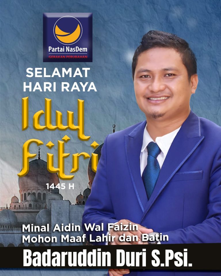 NASIONAL Badaruddin Duri, S.Psi Mengucapkan Selamat Hari Raya Idul Fitri 1445 H/2024By Tim redaksiApril 9, 20240 Sumbawa Barat Obormerahnews.com- Badaruddin Duri, S.Psi Mengucapkan Selamat Hari Raya Idul Fitri 1445H/2024